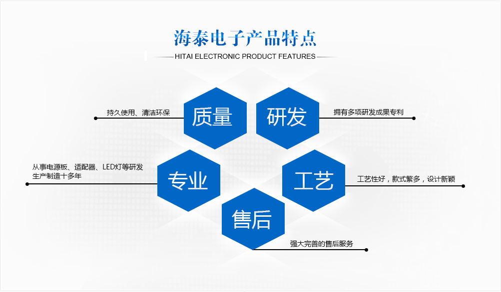 威海海泰電子有限公司成立于2003年(原威海雙豐通訊設備有限公司),是一家致力于開關電源、LED電源、電源適配器、手機充電器、醫(yī)療電源等自主研發(fā)、生產和銷售為一體的高新技術企業(yè)。公司秉承 “以顧客為中心”的宗旨,堅持“以人為本、質量至上 、節(jié)能降耗、清潔環(huán)保、持續(xù)改進 ”的質量和環(huán)境方針,科學高效的組織生產,不斷的提高產品質量。先后通過了ISO9001質量管理體系認證、GJB9001C質量管理體系和GJB3001C質量管理體系和ISO14001環(huán)境管理體系認證。
